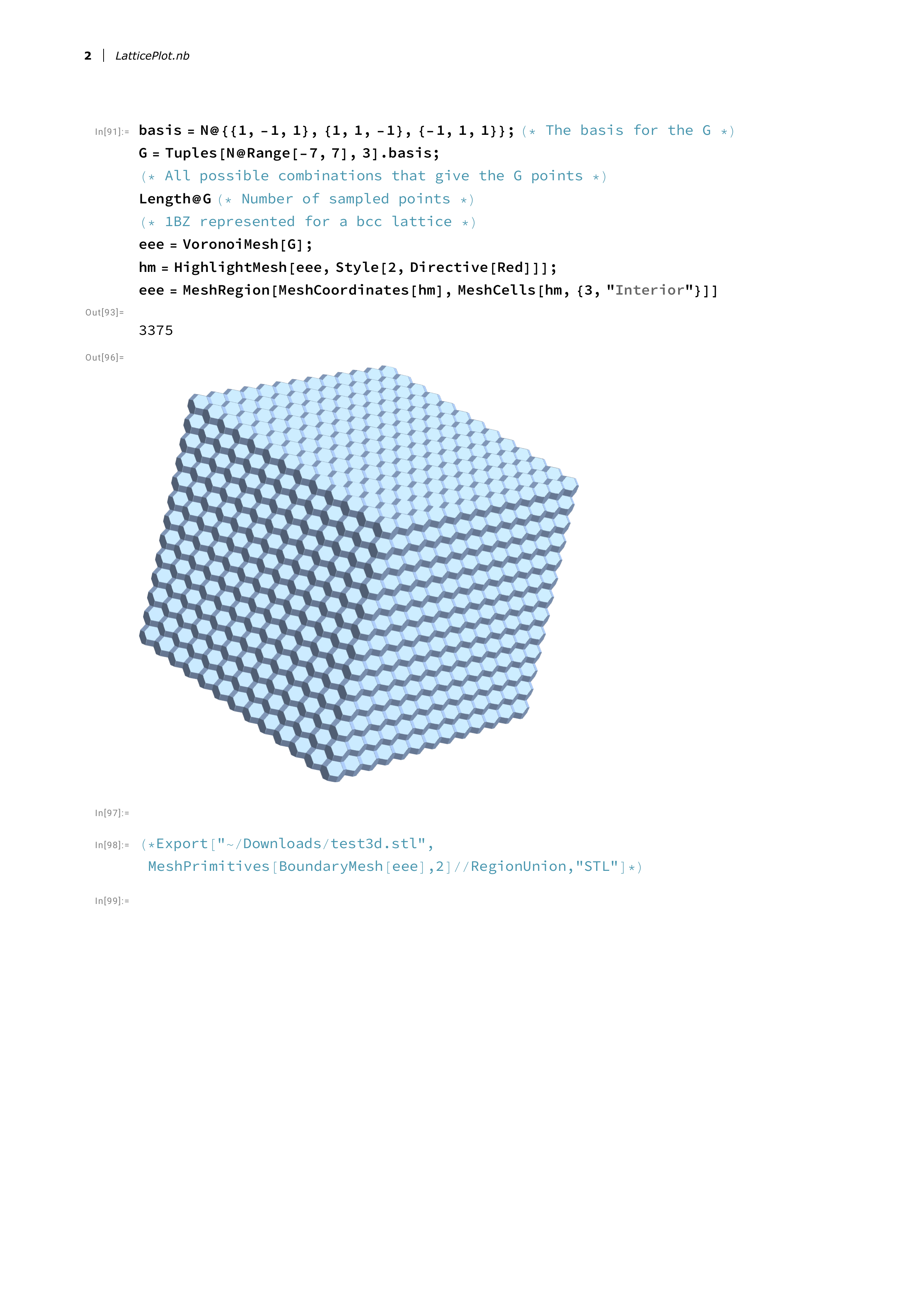 the interior region (the 1BZ). The resulting mesh can be exported as STL