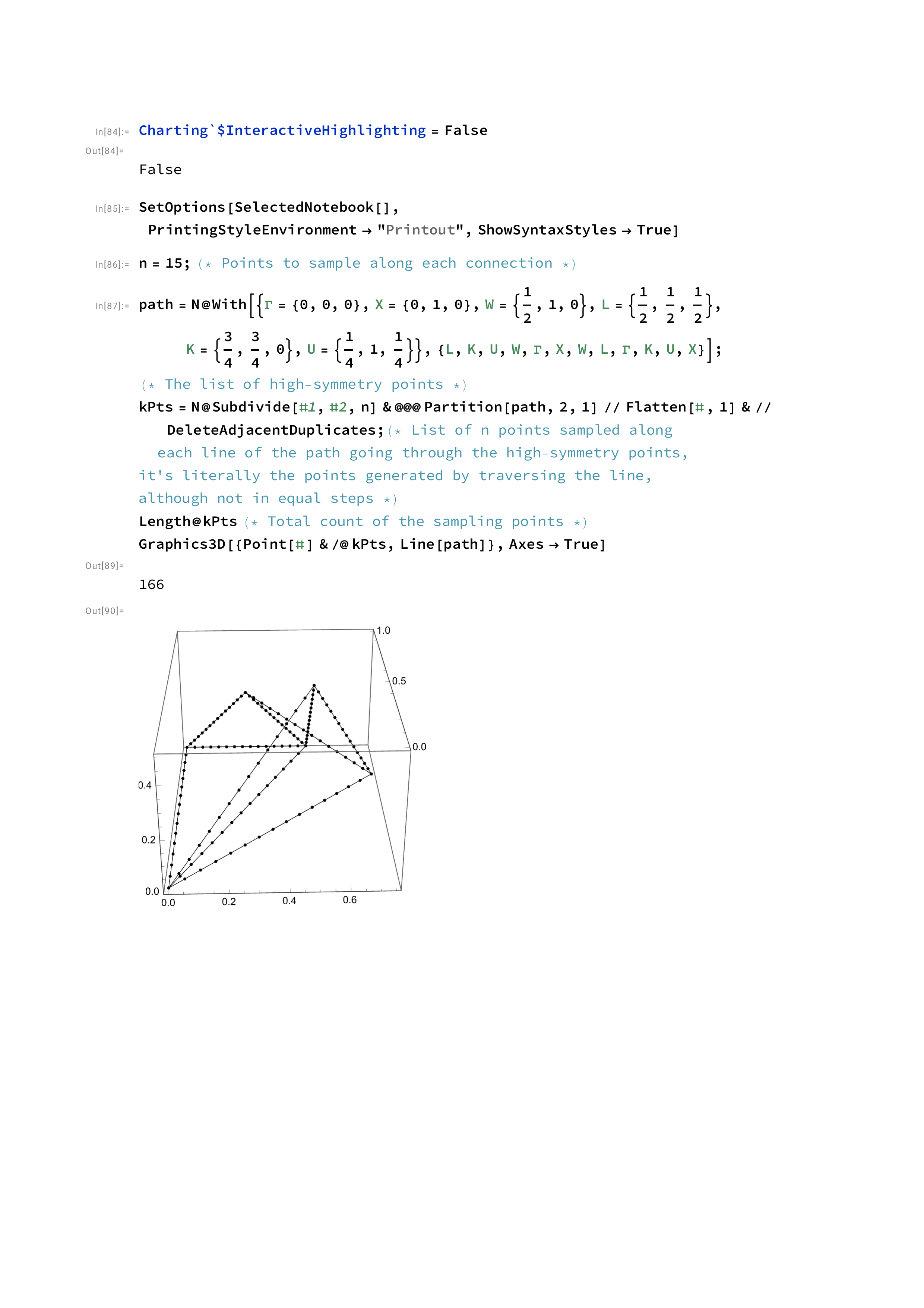 To compute the band structure, I sample 15 points along each segment